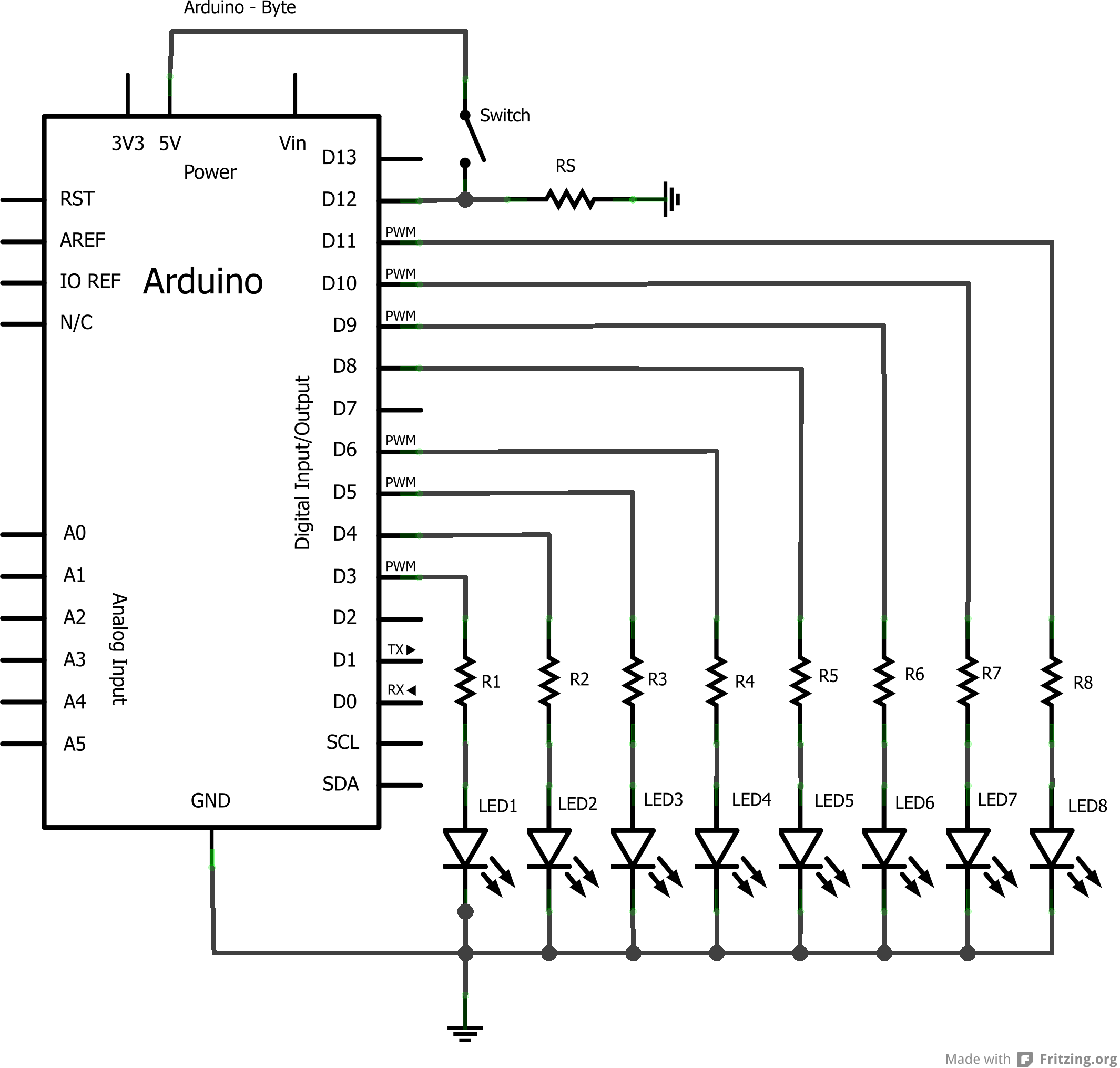 All these defines will translate to hardcoded values so that saves a few bytes in variables. But I do need a few global variables, though. I need variables for the pins and I need variables to remember the values of the left and right die. Well, I could have used “define” for the pin values but I seem to prefer to use variables for pins. Not sure why, exactly.